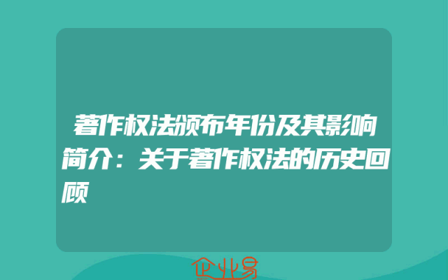 - 著作权法颁布年份及其影响简介:关于著作权法的历史回顾