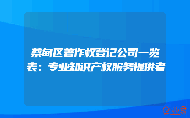 - 蔡甸区著作权登记公司一览表:专业知识产权服务提供者