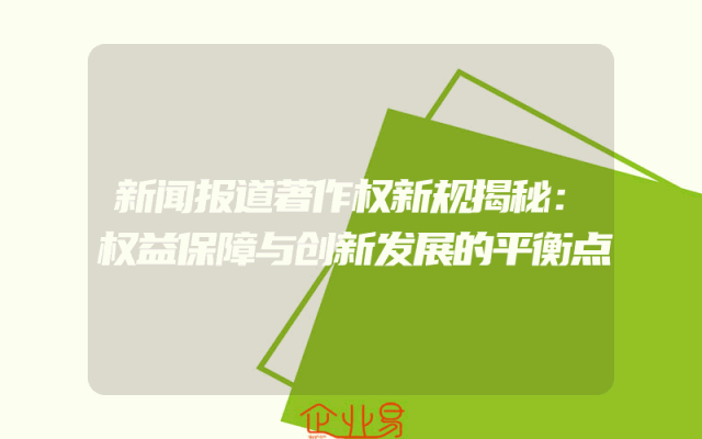 - 新闻报道著作权新规揭秘:权益保障与创新发展的平衡点