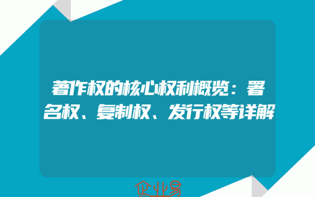 - 著作权的核心权利概览:署名权、复制权、发行权等详解一、署名权署名权是著作权中的基础权利之一,它指的是作者在其创作的作品上标明自己身份的权利。署名权不仅体现了作者对作品的归属感和荣誉感,也是保护作者其