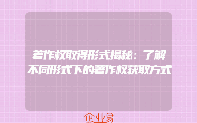 - 著作权取得形式揭秘:了解不同形式下的著作权获取方式