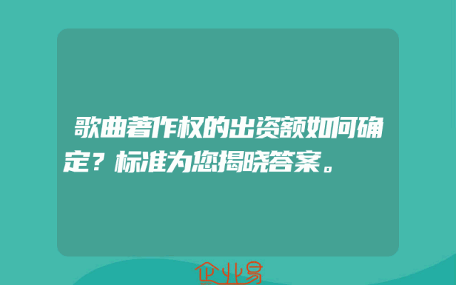 - 歌曲著作权的出资额如何确定?标准为您揭晓答案。