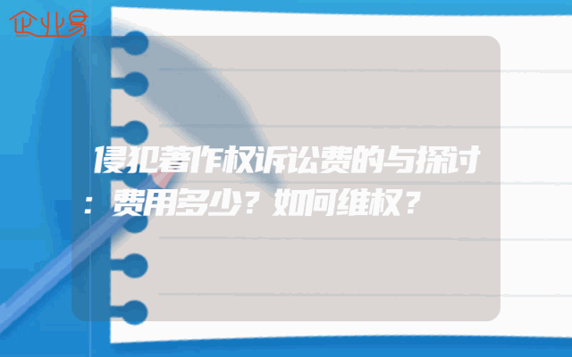 - 侵犯著作权诉讼费的与探讨:费用多少?如何维权?