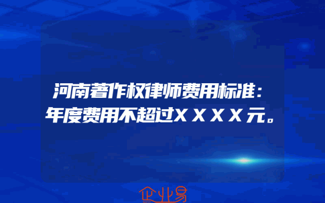 - 河南著作权律师费用标准:年度费用不超过XXXX元。