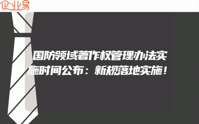 - 国防领域著作权管理办法实施时间公布:新规落地实施!