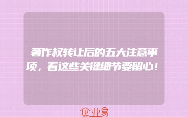- 著作权转让后的五大注意事项,看这些关键细节要留心!