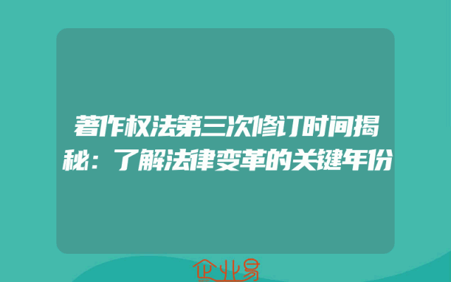 - 著作权法第三次修订时间揭秘:了解法律变革的关键年份