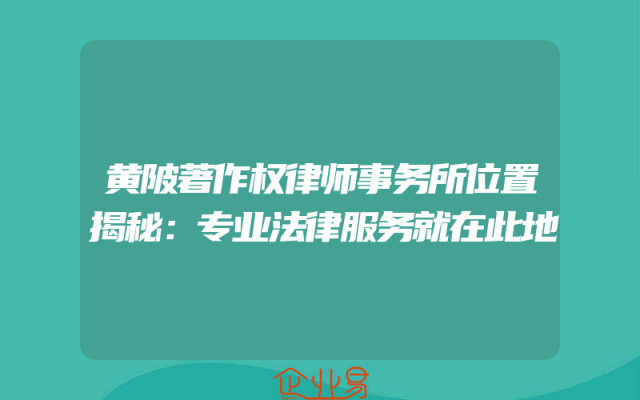 - 黄陂著作权律师事务所位置揭秘:专业法律服务就在此地