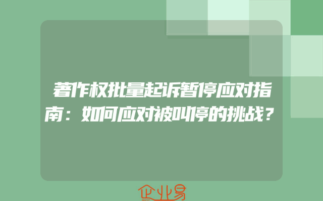 - 著作权批量起诉暂停应对指南:如何应对被叫停的挑战?