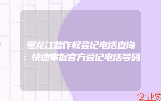 - 黑龙江著作权登记电话查询:快速掌握官方登记电话号码