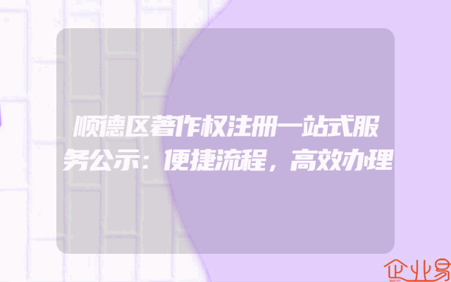 - 顺德区著作权注册一站式服务公示:便捷流程,高效办理