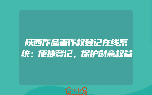 - 陕西作品著作权登记在线系统:便捷登记,保护创意权益