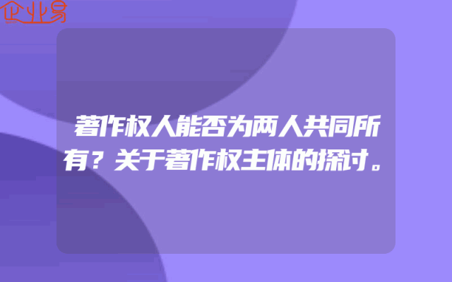 - 著作权人能否为两人共同所有?关于著作权主体的探讨。