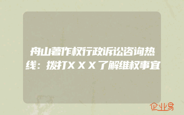 - 舟山著作权行政诉讼咨询热线:拨打XXX了解维权事宜