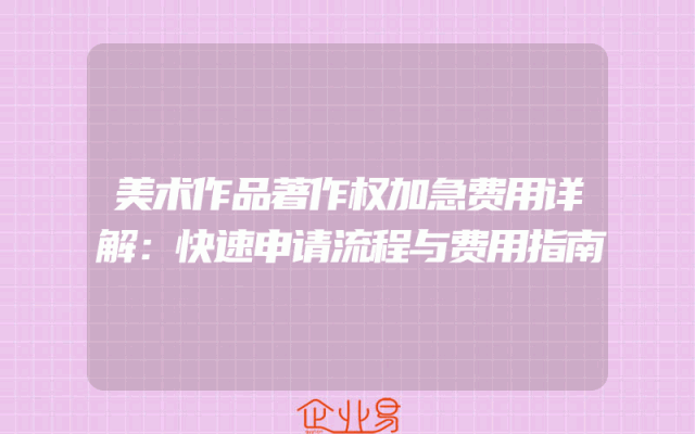 - 美术作品著作权加急费用详解:快速申请流程与费用指南