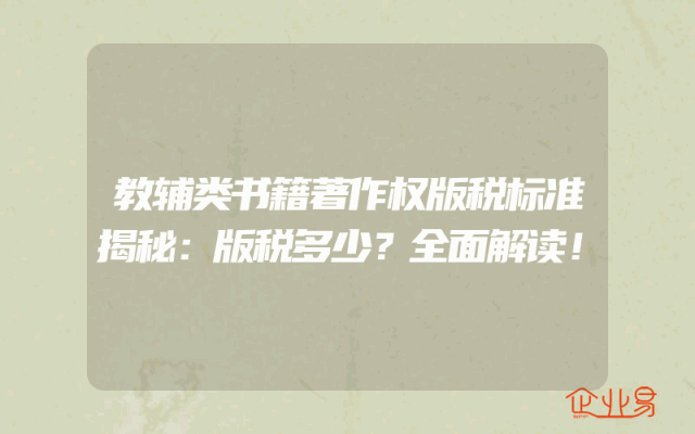 - 教辅类书籍著作权版税标准揭秘:版税多少?全面解读!