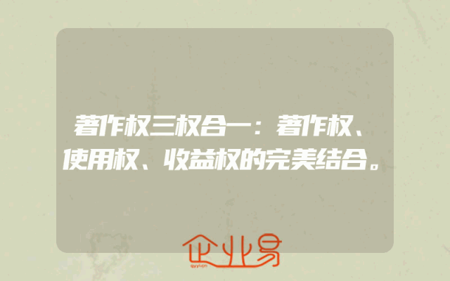 - 著作权三权合一:著作权、使用权、收益权的完美结合。