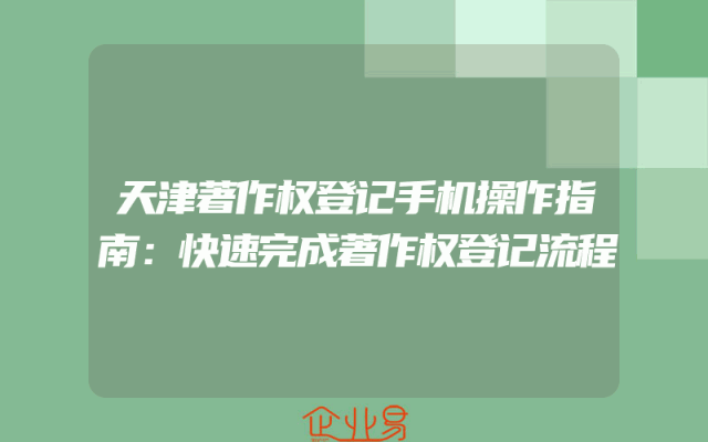 - 天津著作权登记手机操作指南:快速完成著作权登记流程