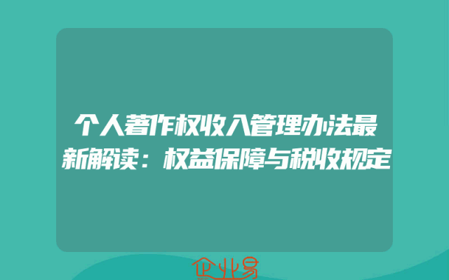 - 个人著作权收入管理办法最新解读:权益保障与税收规定