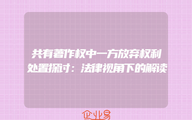 - 共有著作权中一方放弃权利处置探讨:法律视角下的解读