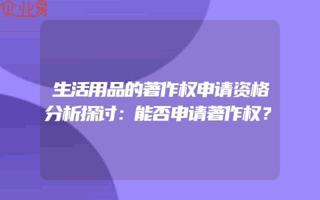 - 生活用品的著作权申请资格分析探讨:能否申请著作权?