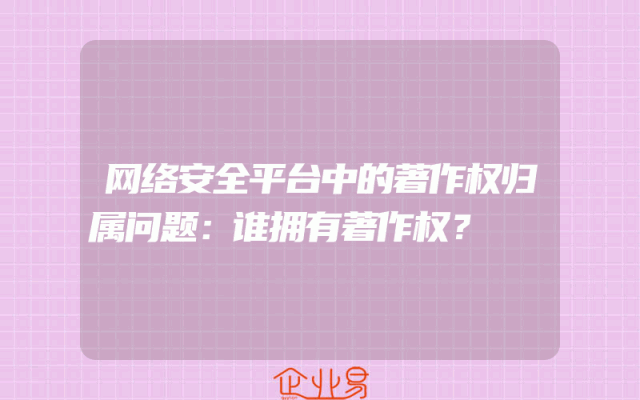 - 网络安全平台中的著作权归属问题:谁拥有著作权?