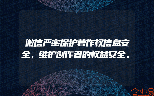 - 微信严密保护著作权信息安全,维护创作者的权益安全。