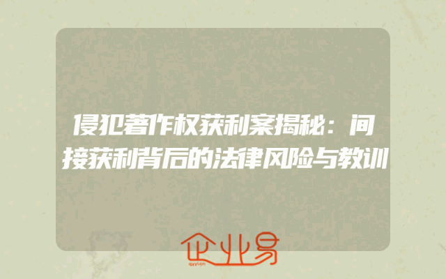 - 侵犯著作权获利案揭秘:间接获利背后的法律风险与教训