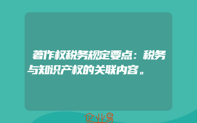 - 著作权税务规定要点:税务与知识产权的关联内容。