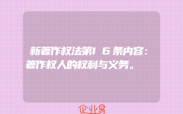 - 新著作权法第16条内容:著作权人的权利与义务。