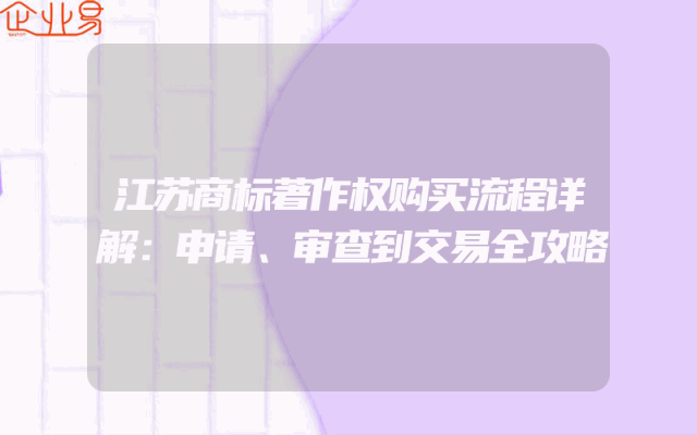 - 江苏商标著作权购买流程详解:申请、审查到交易全攻略