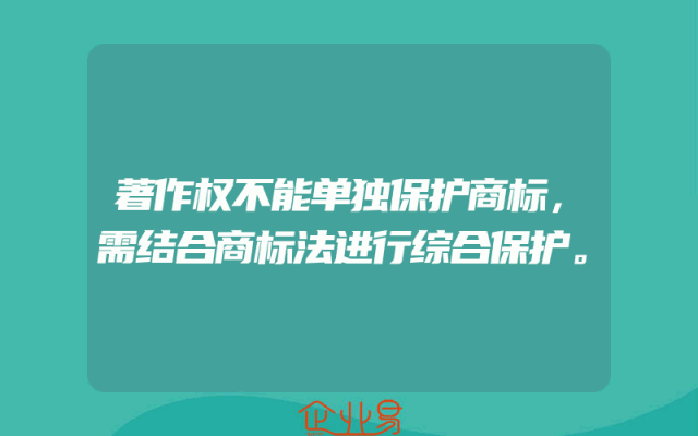 - 著作权不能单独保护商标,需结合商标法进行综合保护。