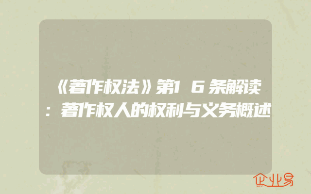 - 《著作权法》第16条解读:著作权人的权利与义务概述