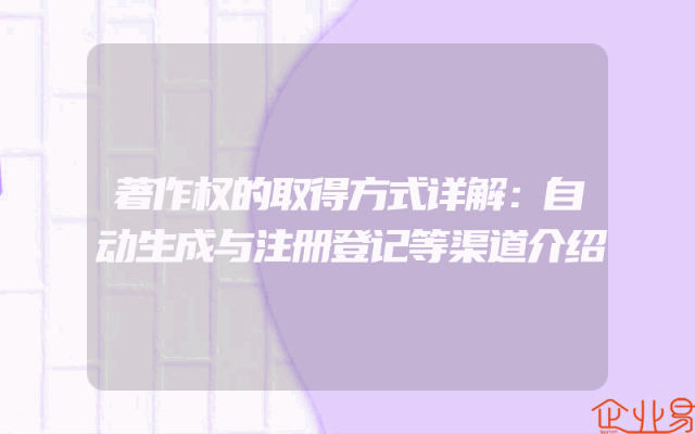 - 著作权的取得方式详解:自动生成与注册登记等渠道介绍