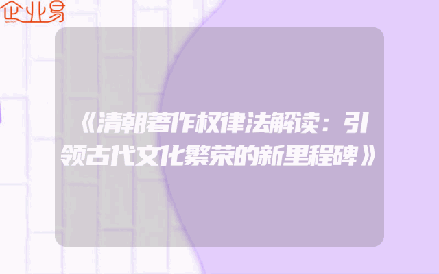 - 《清朝著作权律法解读:引领古代文化繁荣的新里程碑》