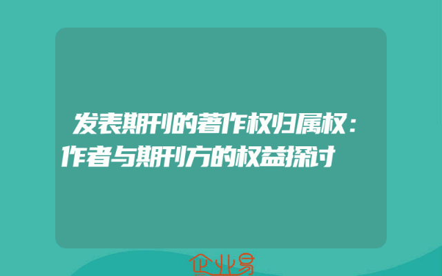 - 发表期刊的著作权归属权:作者与期刊方的权益探讨