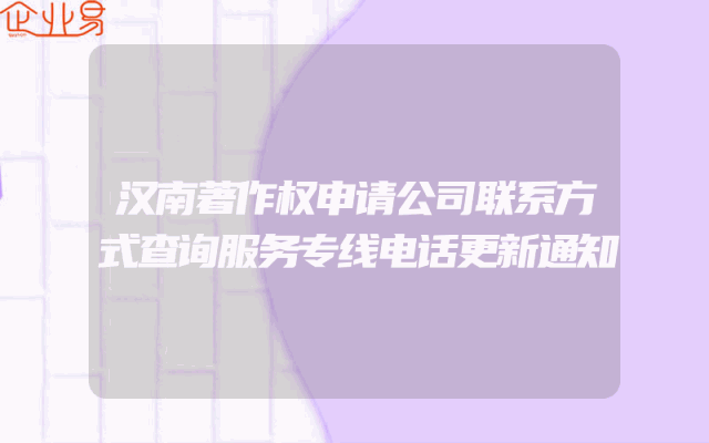 - 汉南著作权申请公司联系方式查询服务专线电话更新通知