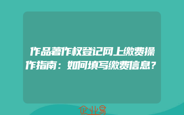 - 作品著作权登记网上缴费操作指南:如何填写缴费信息?