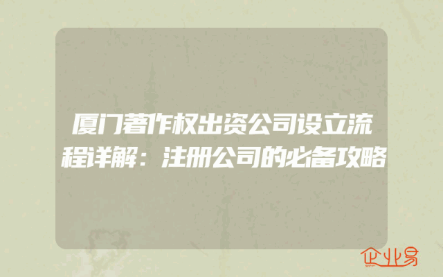 - 厦门著作权出资公司设立流程详解:注册公司的必备攻略