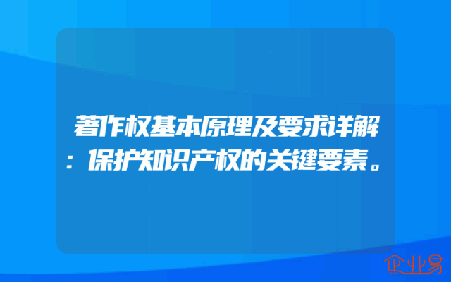 - 著作权基本原理及要求详解:保护知识产权的关键要素。