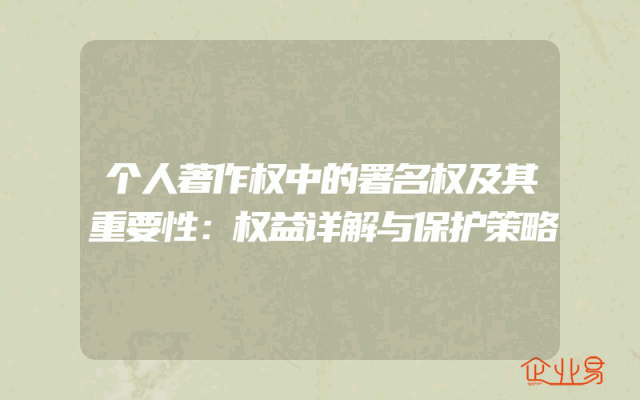- 个人著作权中的署名权及其重要性:权益详解与保护策略