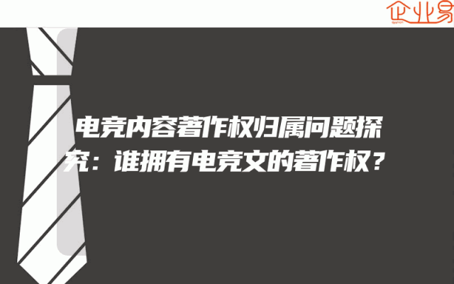 - 电竞内容著作权归属问题探究:谁拥有电竞文的著作权?