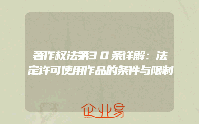 - 著作权法第30条详解:法定许可使用作品的条件与限制