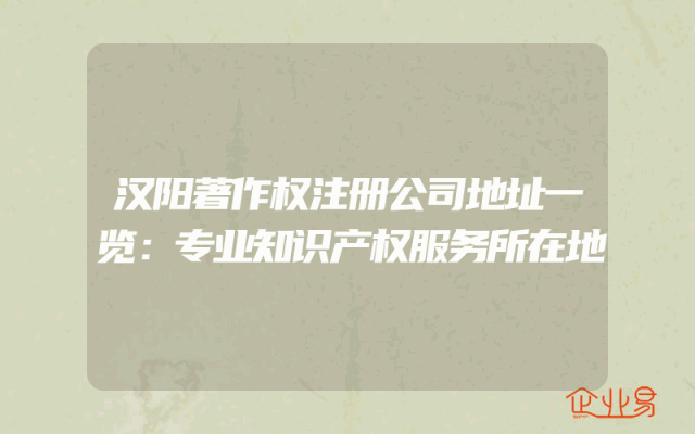 - 汉阳著作权注册公司地址一览:专业知识产权服务所在地