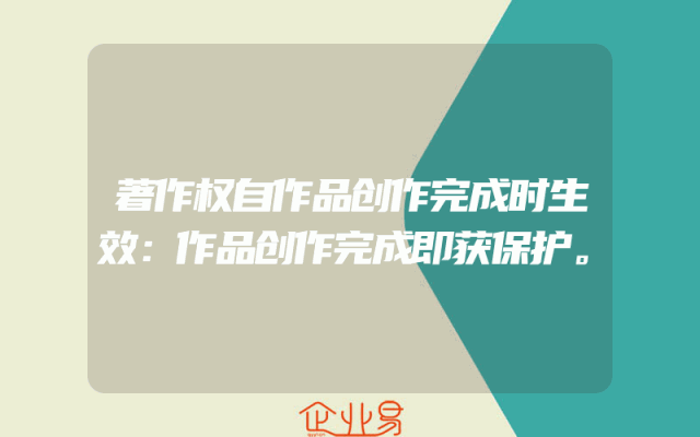 - 著作权自作品创作完成时生效:作品创作完成即获保护。