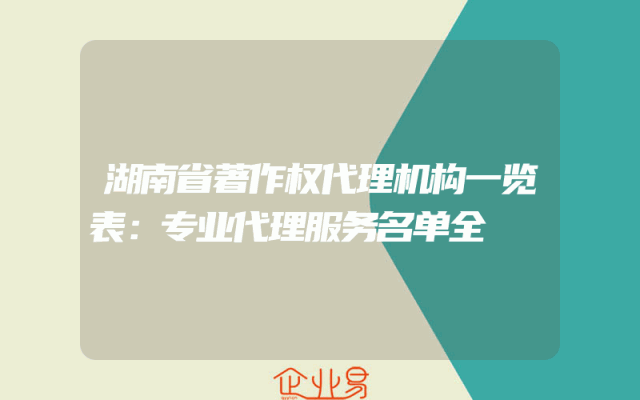 - 湖南省著作权代理机构一览表:专业代理服务名单全