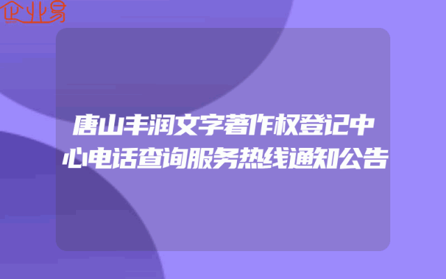 - 唐山丰润文字著作权登记中心电话查询服务热线通知公告
