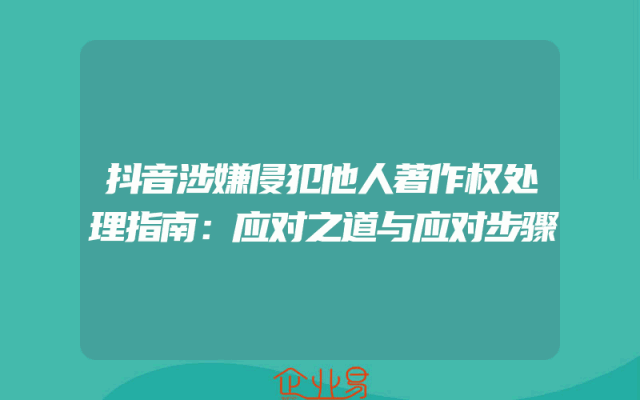 - 抖音涉嫌侵犯他人著作权处理指南:应对之道与应对步骤