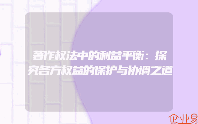 - 著作权法中的利益平衡:探究各方权益的保护与协调之道
