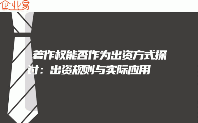 - 著作权能否作为出资方式探讨:出资规则与实际应用解析一、著作权作为出资方式的概述随着知识产权经济的发展,著作权作为一种重要的知识产权,其经济价值日益凸显。那么,著作权能否作为出资方式,成为了业界关注的焦点。所谓出资,是指股东在公司设立或增资时
